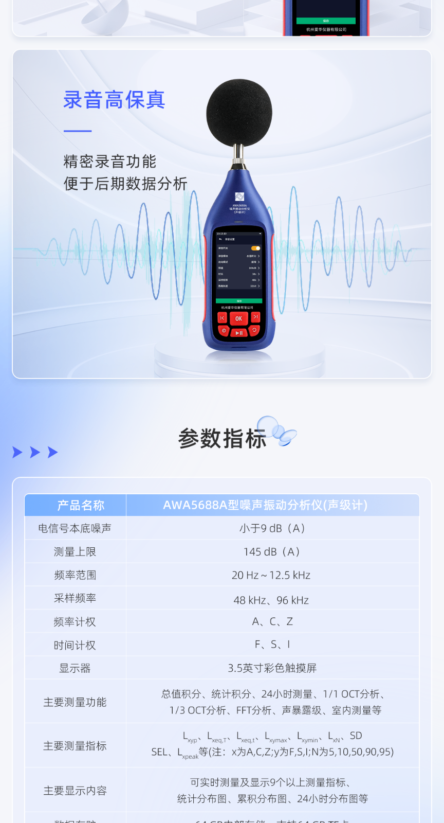 AWA5688A型噪声振动阐发仪(声级计):一键多目标丈量,智能高效,合用普遍
